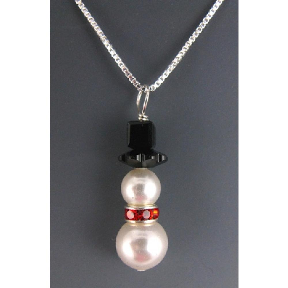 Whimsical Frosty the Snowman Necklace are made with the finest European pearls and Crystals with 18 inches sterling silver box chain with spring clasp. The chain is made in Italy.