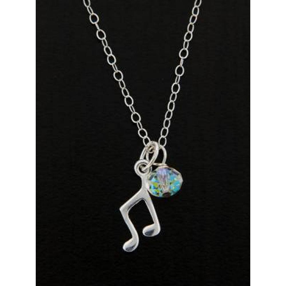 Get your groove on! With this sweet sterling silver musical note charm necklace with the finest European Crystals in clear ab. Comes with 18" sterling silver classic chain with spring clasp. Great gift to any music lover!