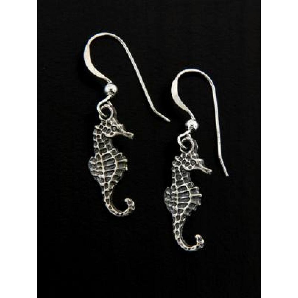Make a splash through the seas of fashion with this adorable sterling silver seahorse earrings! The sculptured seahorse is just the right touch of a cool beach style!