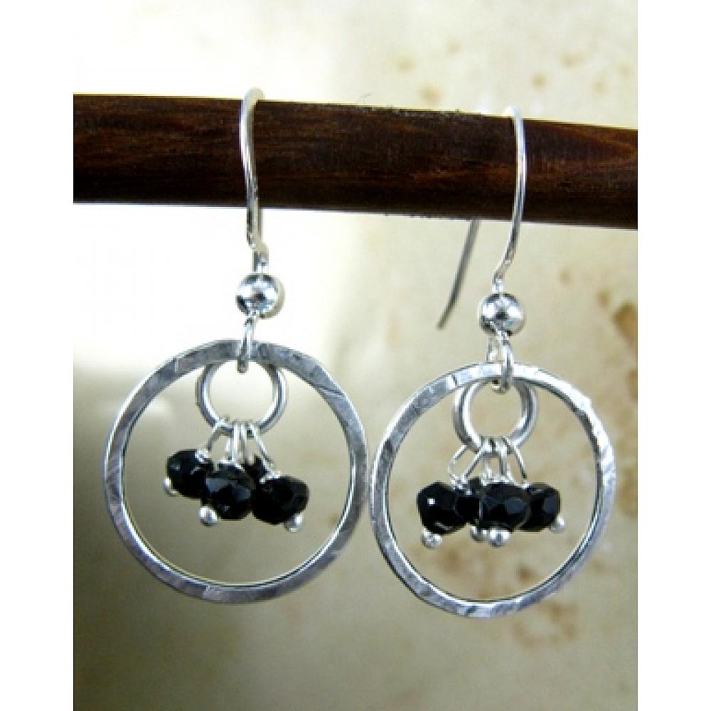 Delicate hand-hammered sterling silver rings (made by the artist) with gemstone clusters (2-3mm stone) in black spinel gemstone. Matching necklace is also available.