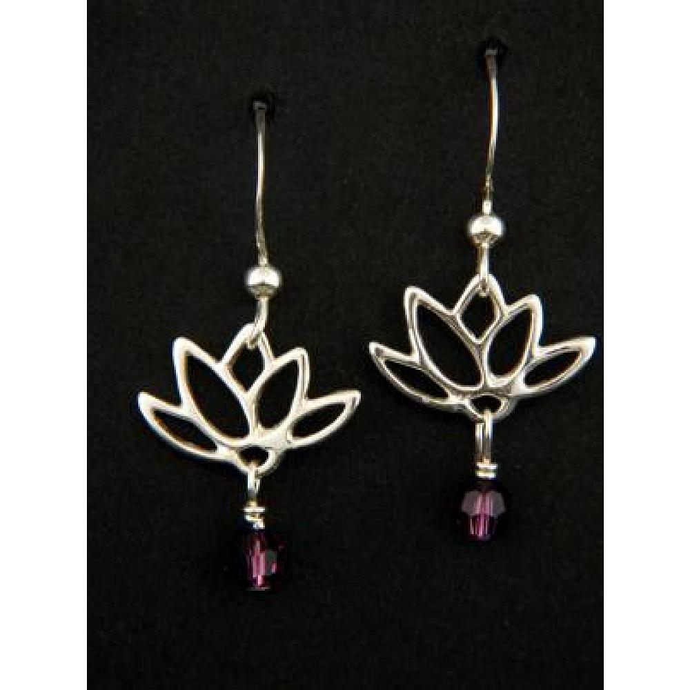 Beautiful Blooms. These delicate pair of lotus blossom earring makes a striking statement of simplicity that symbolizes purity, divine birth, and new beginnings.  For an added feminine flair, a dainty European crystal in amethyst color adorns the lotus flower.