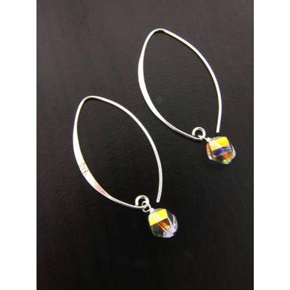 Modern & Sleek. Update your style with these marque shaped earrings in sterling silver with unique facets of Helix European crystals in clear ab.