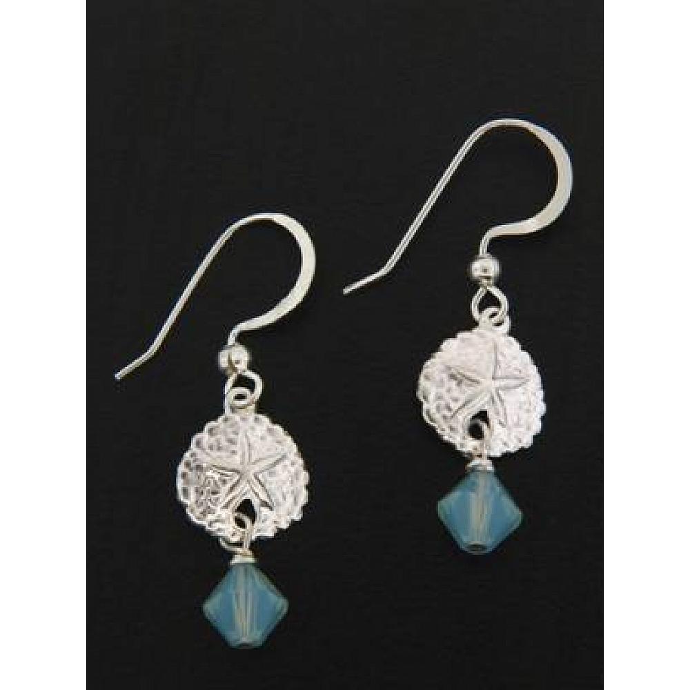 Make a splash with this refreshing sterling silver sand dollar earrings adorned with pacific opal crystal.