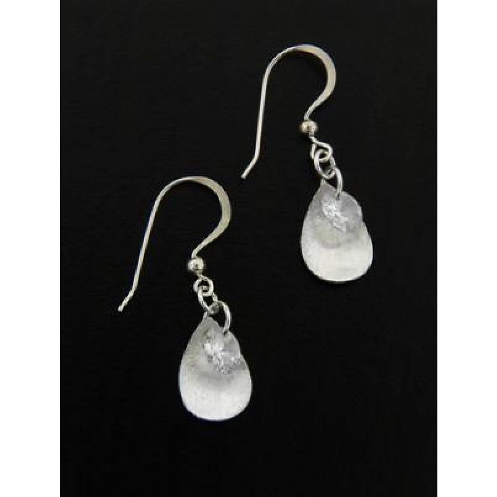 These earrings are finely crafted sterling silver brushed petals with a drop of brilliant round cubic zirconian in olivine green. Modern yet so delicate!