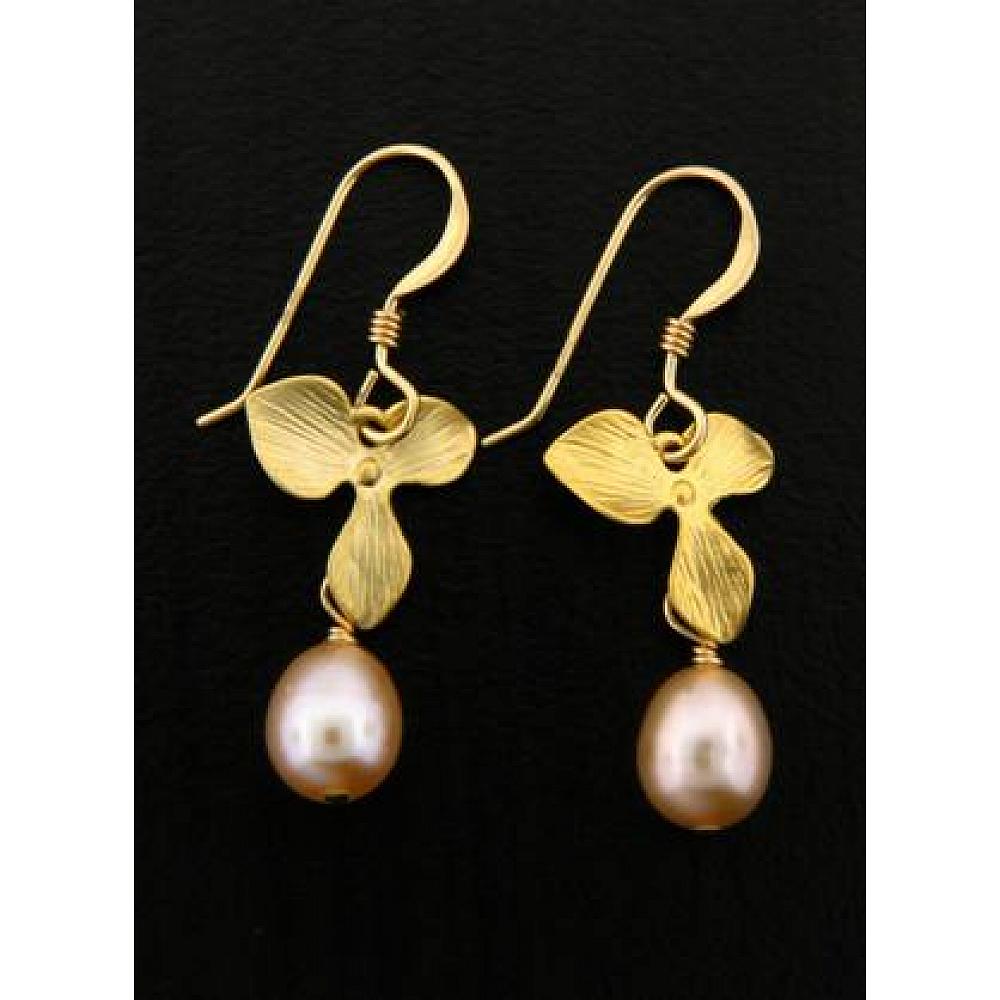 The lovely pairing of gold-tone and pink pearl plays out swimmingly in this ultra feminine piece that exudes elegance. The brilliant pink pearl drop contrasts against the detailed orchid for a delicate and luxurious design.