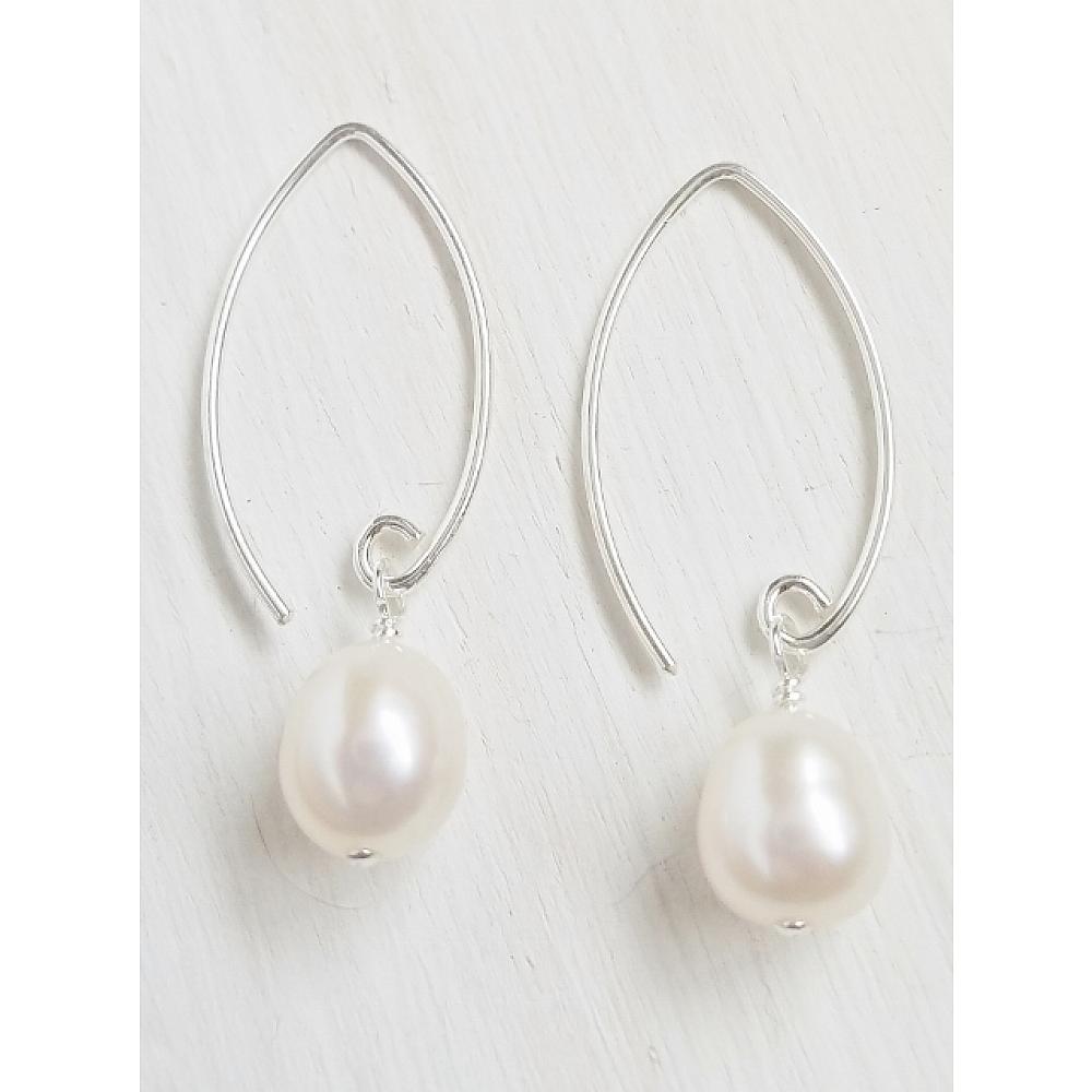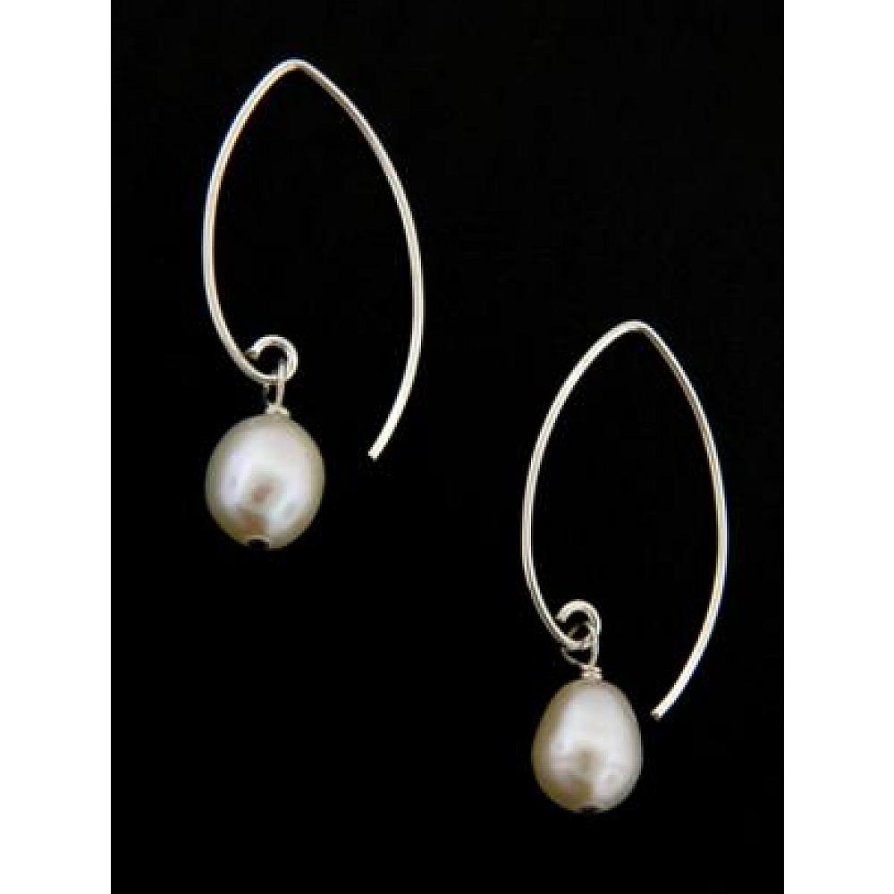 Looking for something different? Try these fun pair of hand formed sterling silver earwires in marquise shape which features a freshwater pearl in white that adds just the right flair!