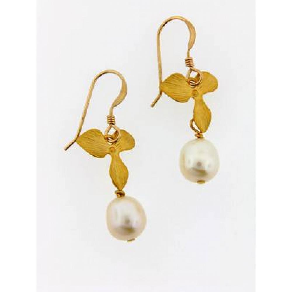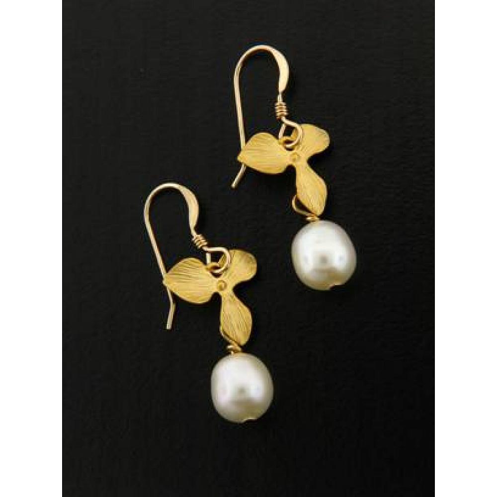 Gold White Pearl Orchid Earrings Gold White Pearl Orchid Earrings