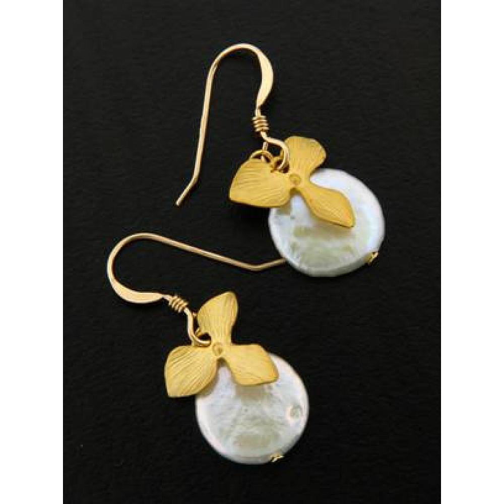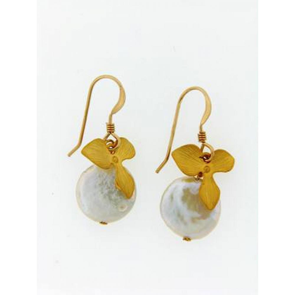 Gold Coin Pearl Orchid Earrings Gold Coin Pearl Orchid Earrings