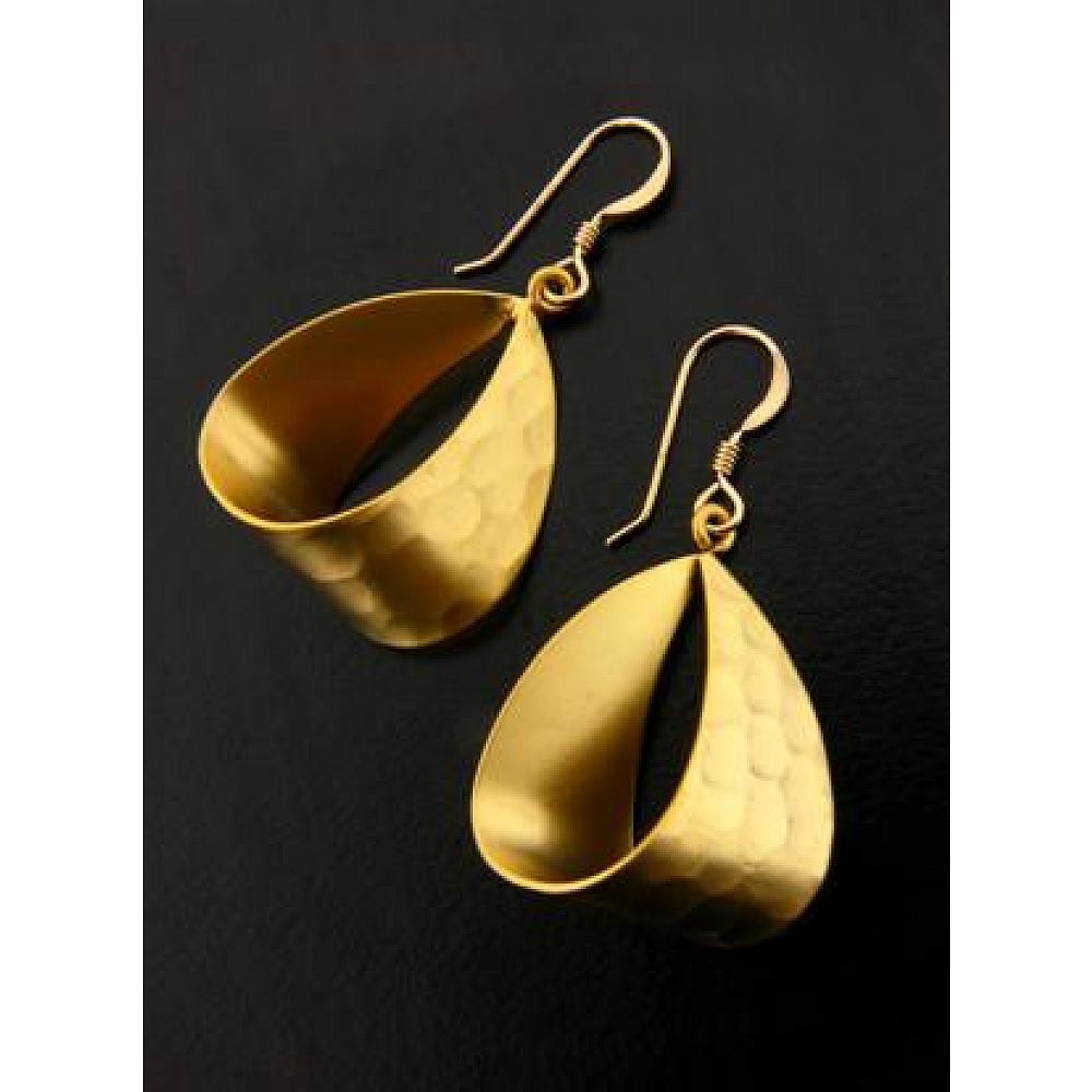 With all the sass of a traditional hoop earring and the understated class of satin, this unique pair of golden drops is the perfect mate to your fanciest frocks.