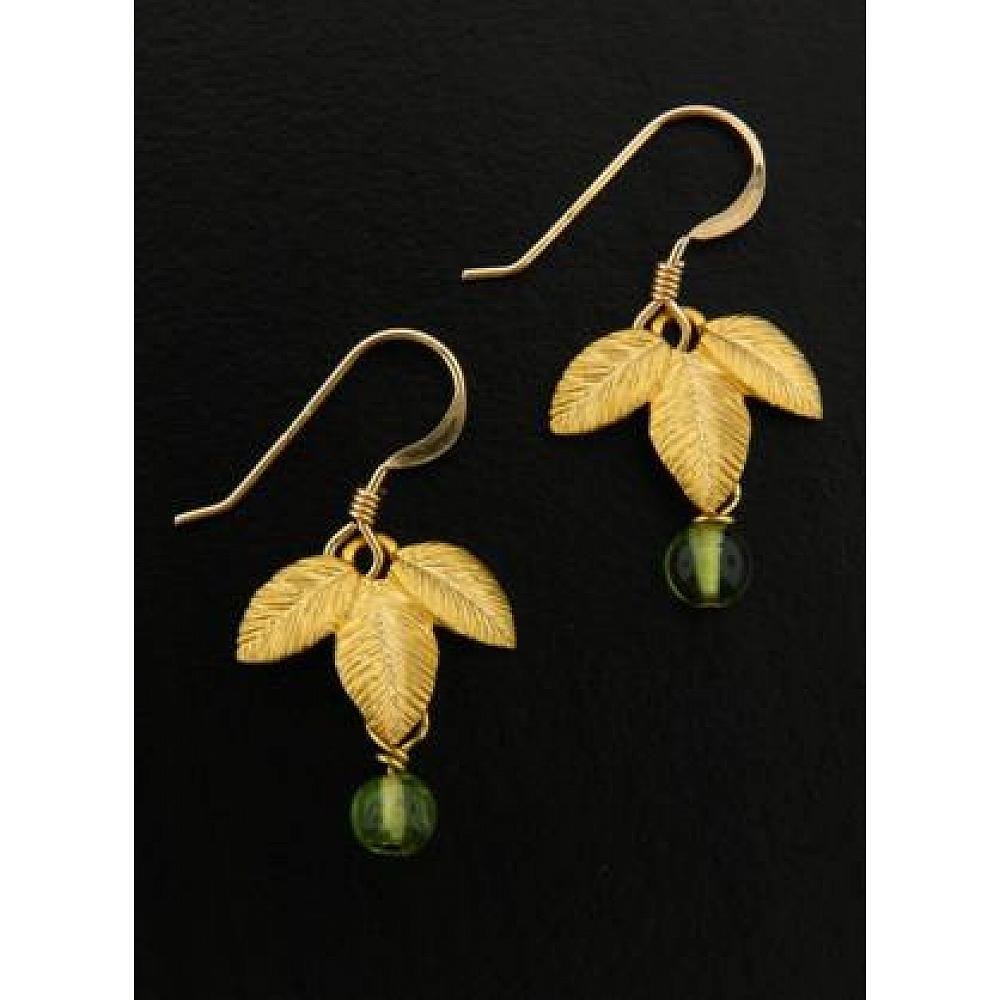 Gold Exotic Matte Leaf w/ Peridot Earrings