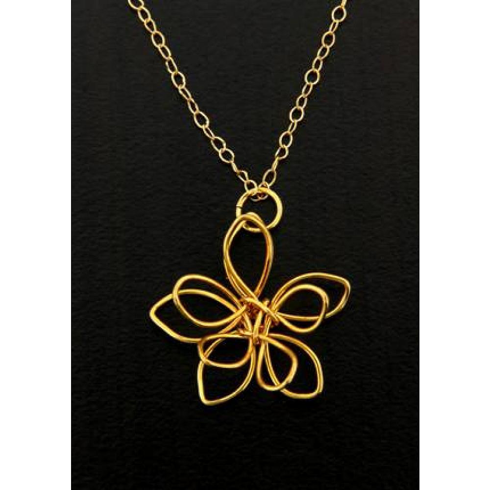 #6100 Gold Wire-Wrapped Lotus Necklace