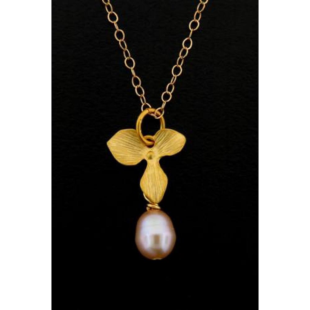 Gold Pink Pearl Orchid Necklace