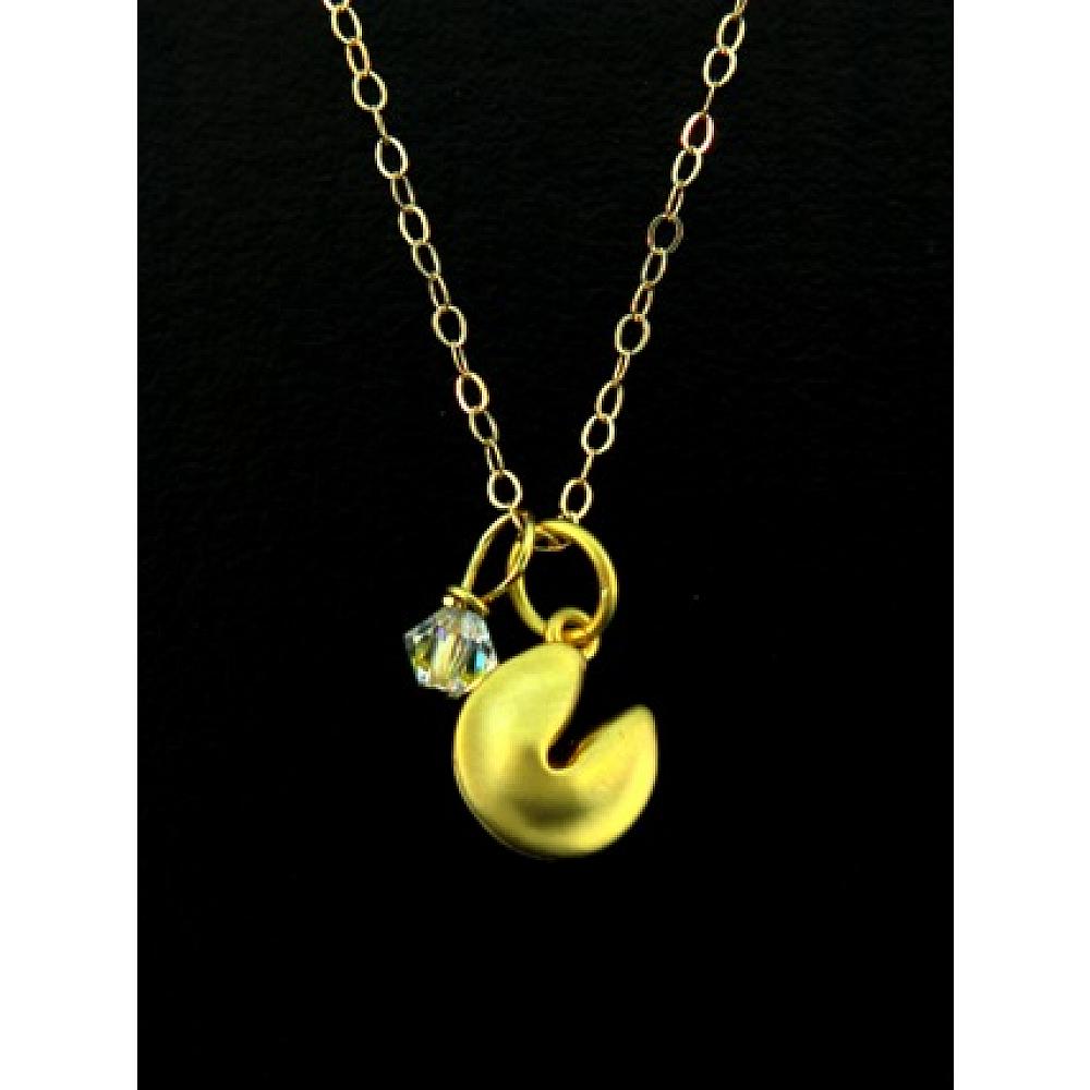 Catch your good fortune with this 16k gold-plated petite fortune cookie in matte finish adorned with the finest European crystal in clear ab. Comes with 14k gold-filled classic chain in 18" long with spring clasp for easy wear.