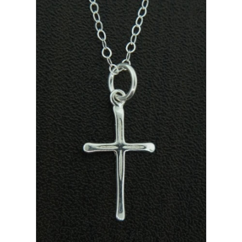 This classic sterling silver cross has a smooth polished finished that adds a touch of modern and feminin twist.