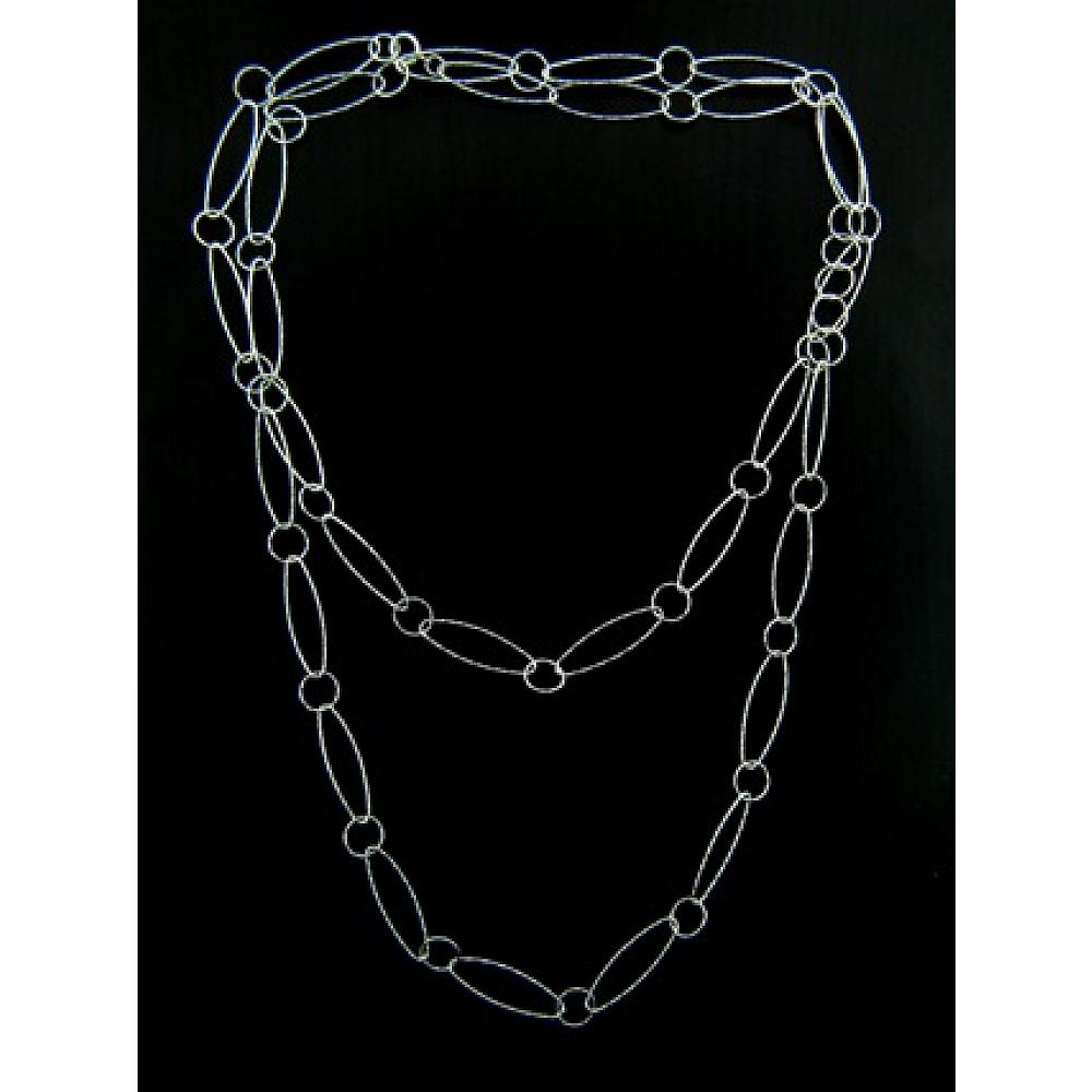 Stylish modern sterling silver oval & circle diamond cut combo design necklaces in 36 inches long, also comes with a clasp! So you can wear this long necklace by itself or wear it with other necklaces for layering effect.