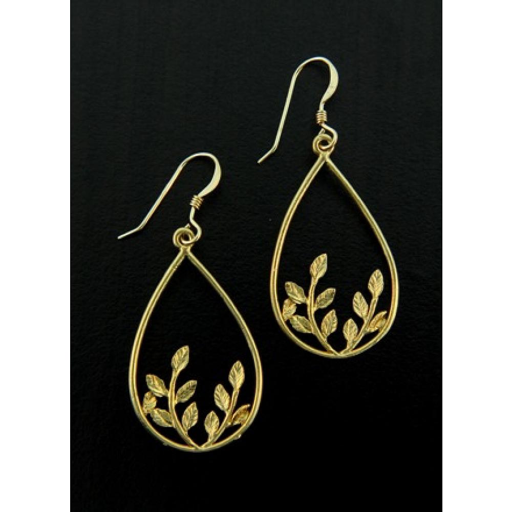 • 16K gold plated leaf and branch decorated teardrop hoop charm