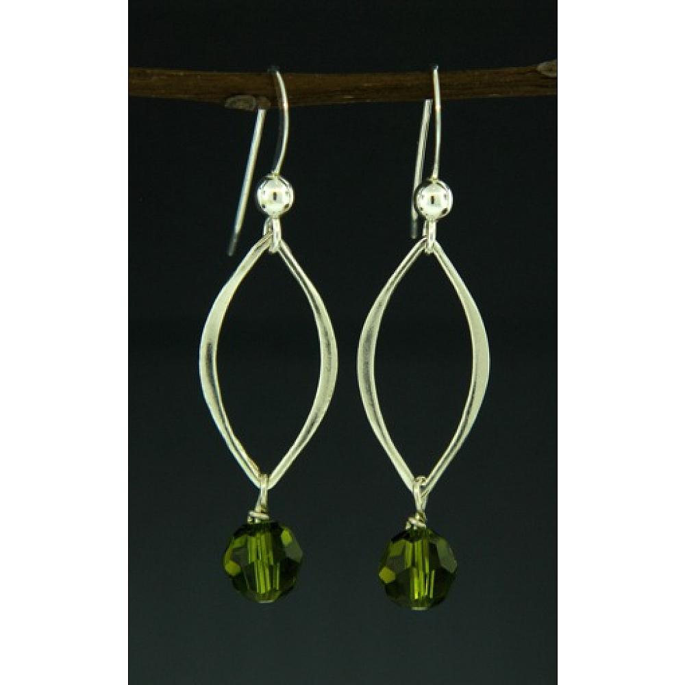 #1672 Silver Lotus Petals Olivine Crystal Earrings