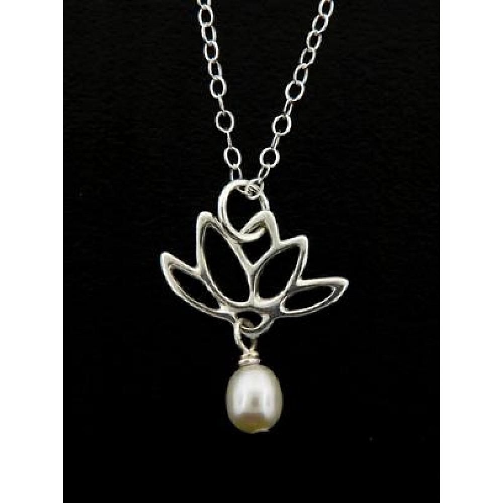 Turn tired looks into elegant ensembles with these intricate lotus necklace paired with a polished pearl.