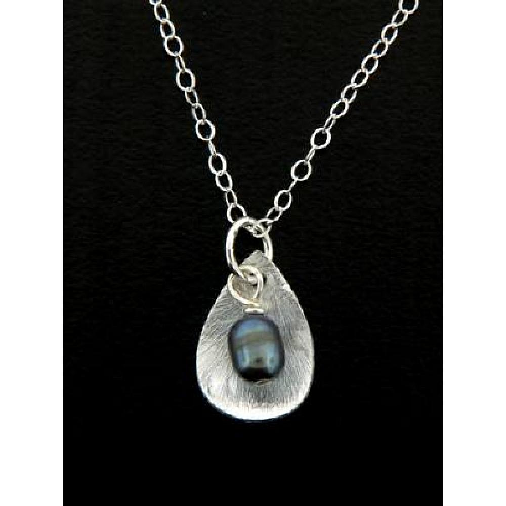 • Hand wrapped grey/black freshwater pearl drop
