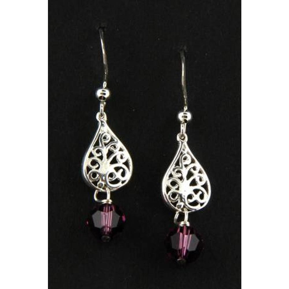 A amethyst colored essential that offers an elegant scrolled accent to add texture to any look. This delicate pair are a perfect coordinate for any occasion.