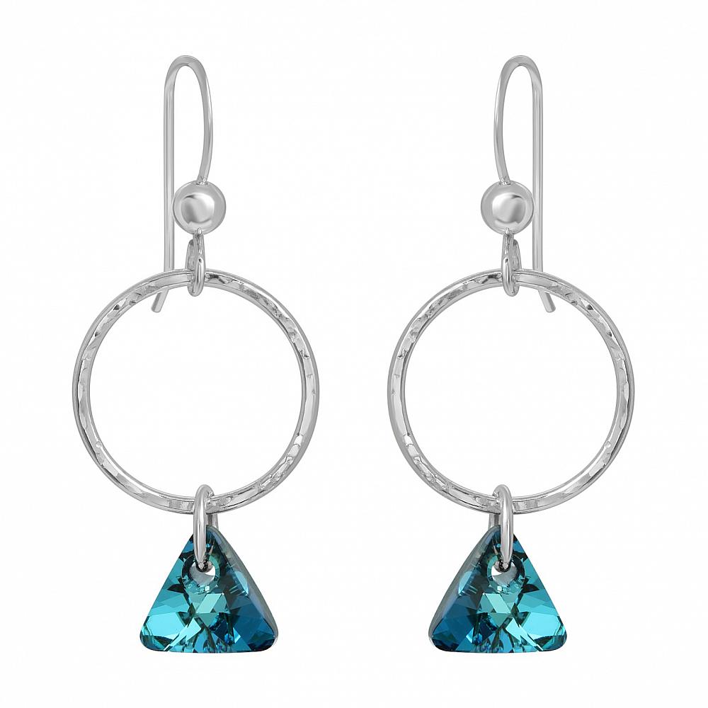 Hammered Hoop with Triangle Crystal Earrings - Bermuda Blue Hammered Hoop with Triangle Crystal Earrings - Bermuda Blue Hammered Hoop with Triangle Crystal Earrings - Bermuda Blue Hammered Hoop with Triangle Crystal Earrings - Bermuda Blue