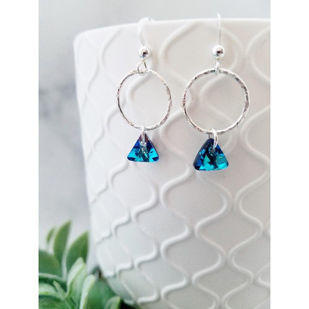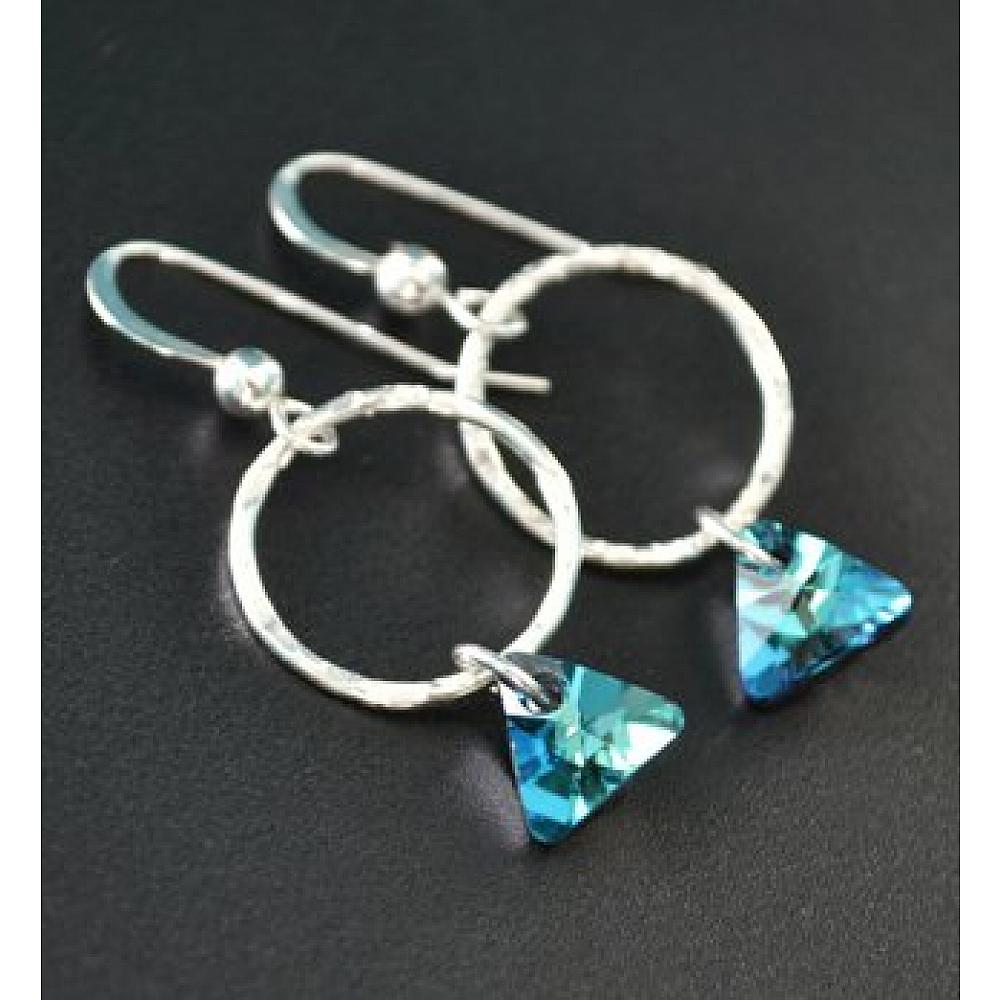 #1692 Hammered Hoop with Triangle Crystal Earrings - Bermuda Blue