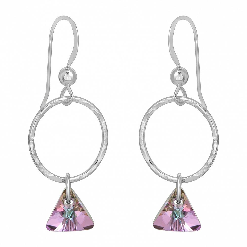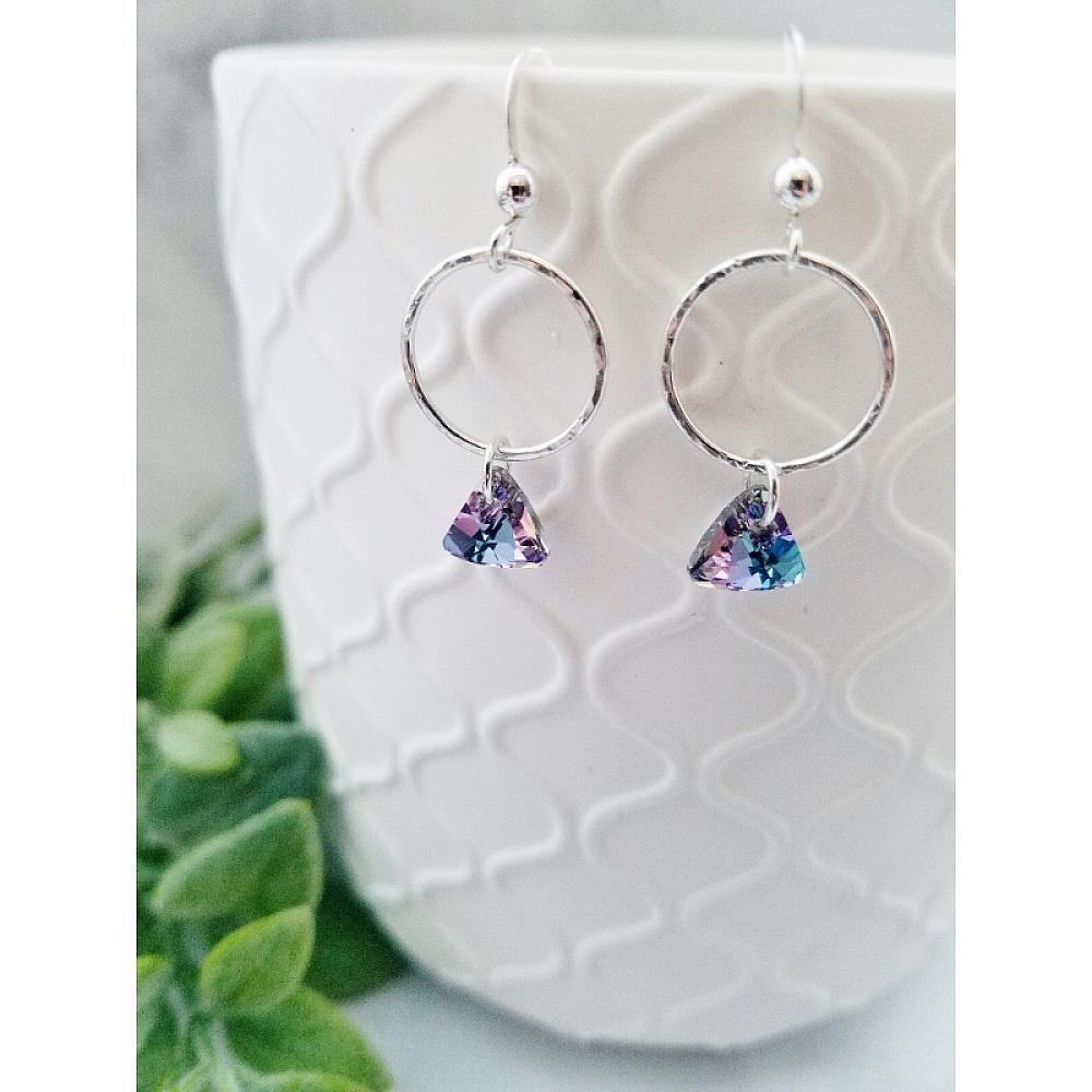 Hammered Hoop with Triangle Crystal Earrings - Vitrail Purple Hammered Hoop with Triangle Crystal Earrings - Vitrail Purple Hammered Hoop with Triangle Crystal Earrings - Vitrail Purple