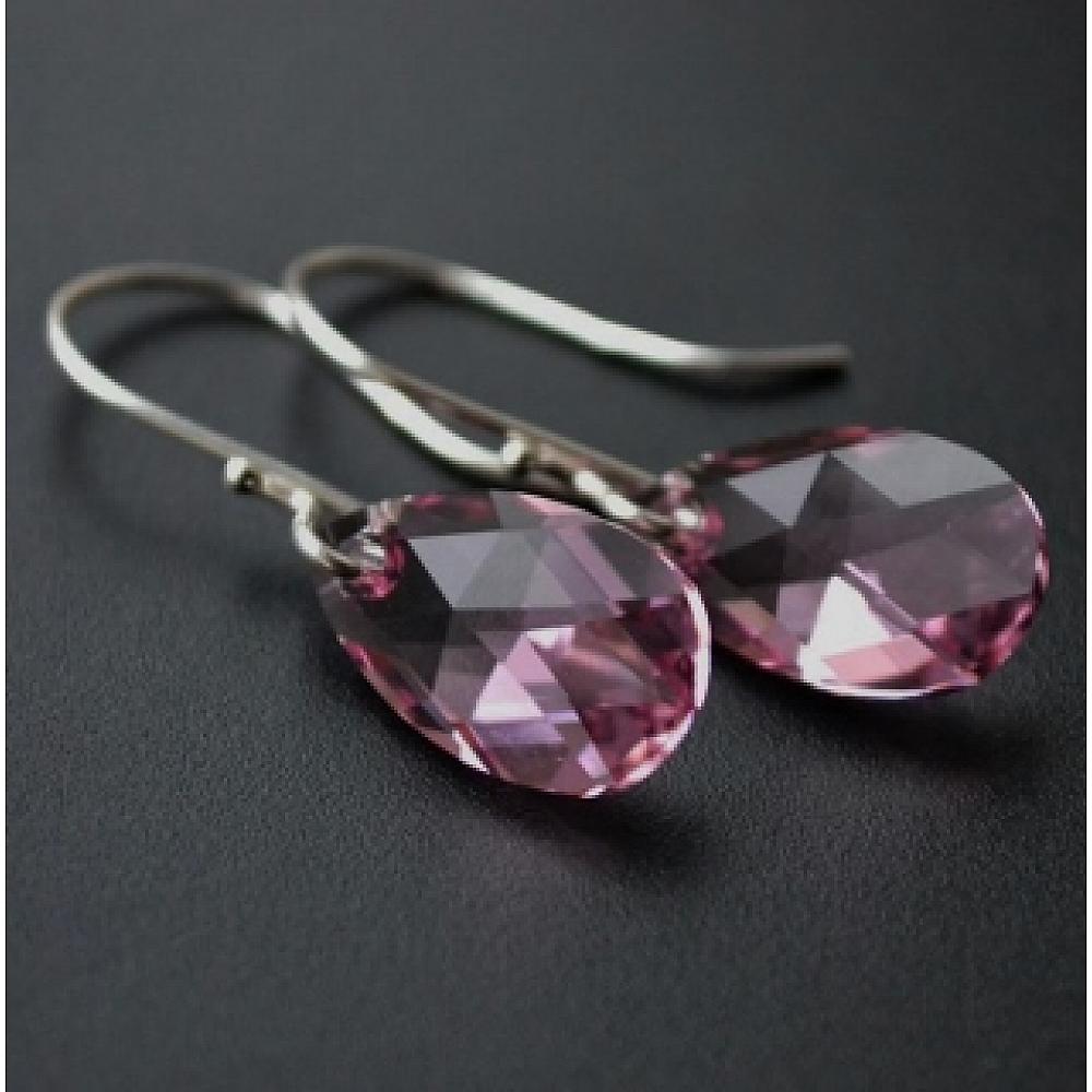 Crystal Briolette Earrings -  Rose Pink Crystal Briolette Earrings -  Rose Pink Crystal Briolette Earrings -  Rose Pink