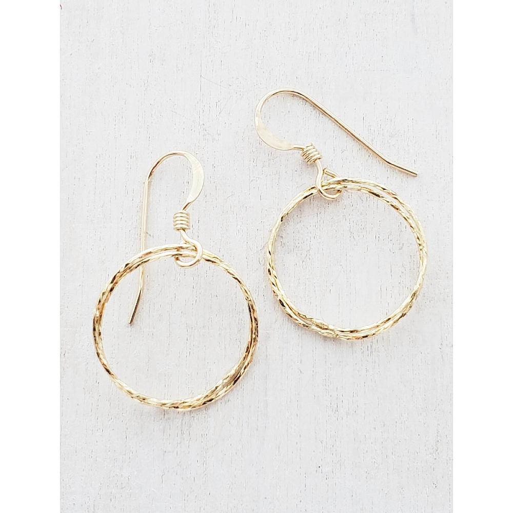 Gorgeous gold over sterling silver diamond circle cut loop. These earrings are sophisticated and still maintain and elegant simplicity. Earrings have never been so perfect!