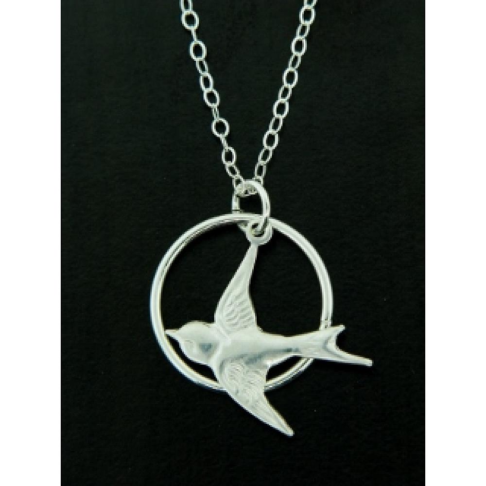 Sterling Silver Swallow Song Bird Necklace