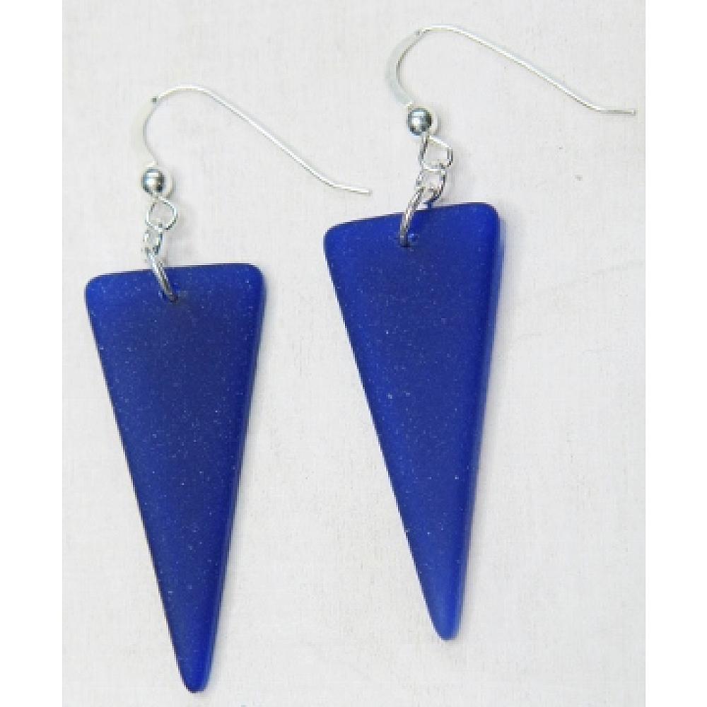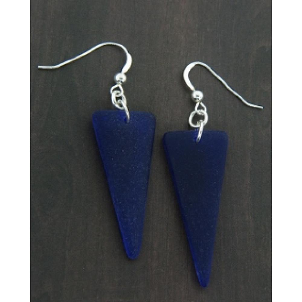 Make waves with these triangular shield shaped cultured sea glass earrings in cobalt blue.