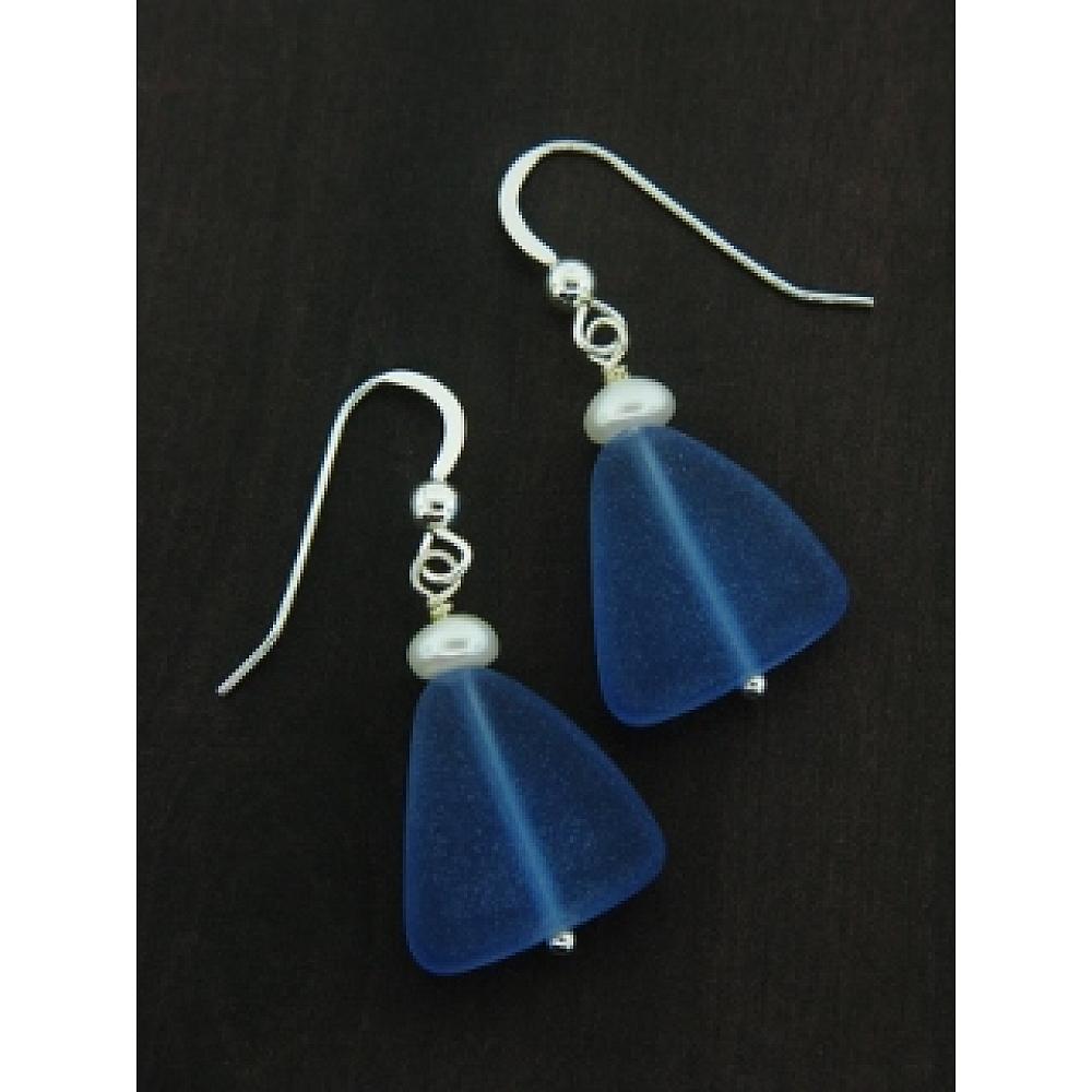 Eco Sea Glass with Pearl Earrings - Cobalt Blue Eco Sea Glass with Pearl Earrings - Cobalt Blue