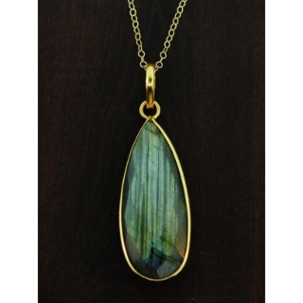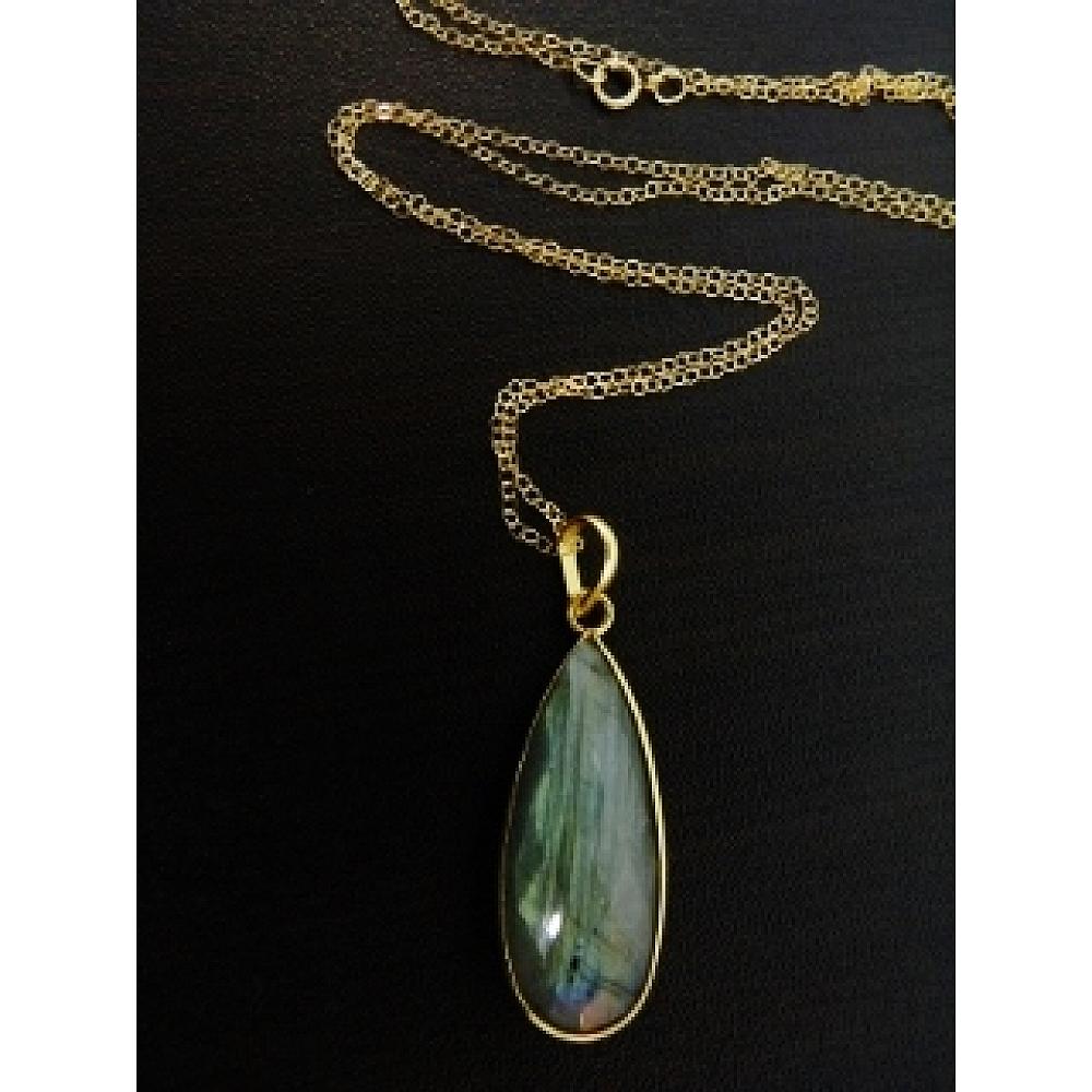 #6336 30" Gold Teardrop Labradorite Necklace