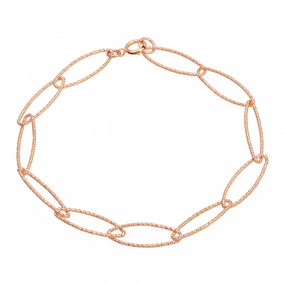 Perfect statement. Lightweight and full of shimmer these diamond cut oval pattern in rose gold over sterling silver with spring clasp. You can wear this bracelet by itself or wear it with other bracelets for a layering effect.