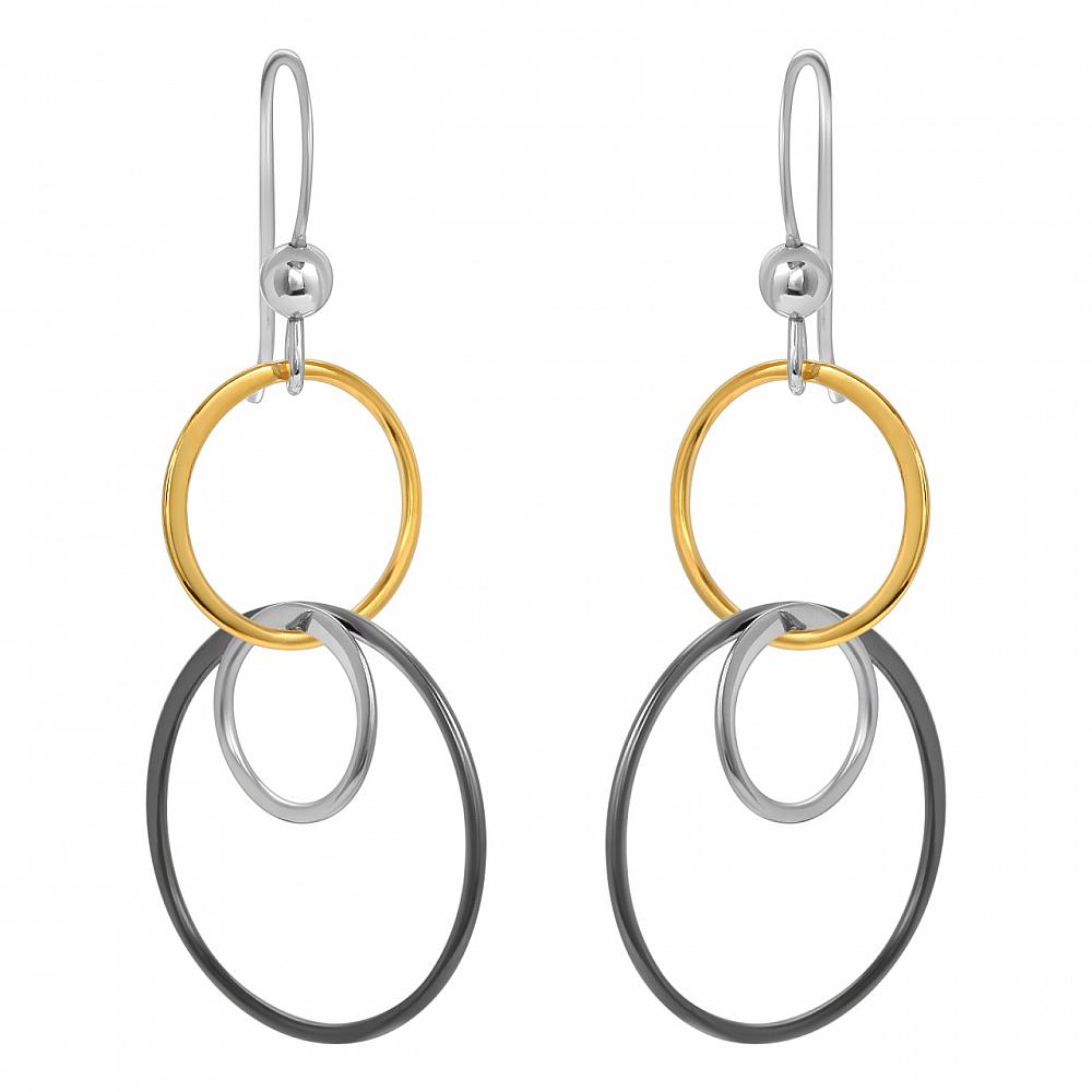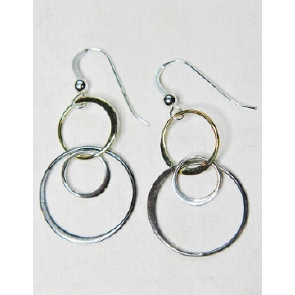 Uniquely mixed metals. Each interlocking circle are in different finishses - Sterling silver, bronze and oxidize black over sterling silver. sterling silver French earwires.