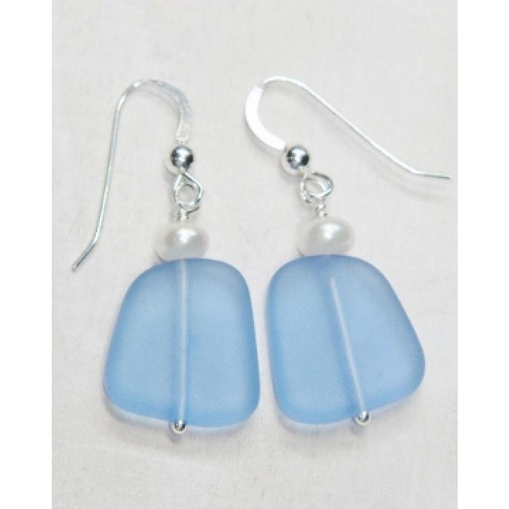 #1831 Eco Sea Glass with Pearl Earrings - Cornflower Blue