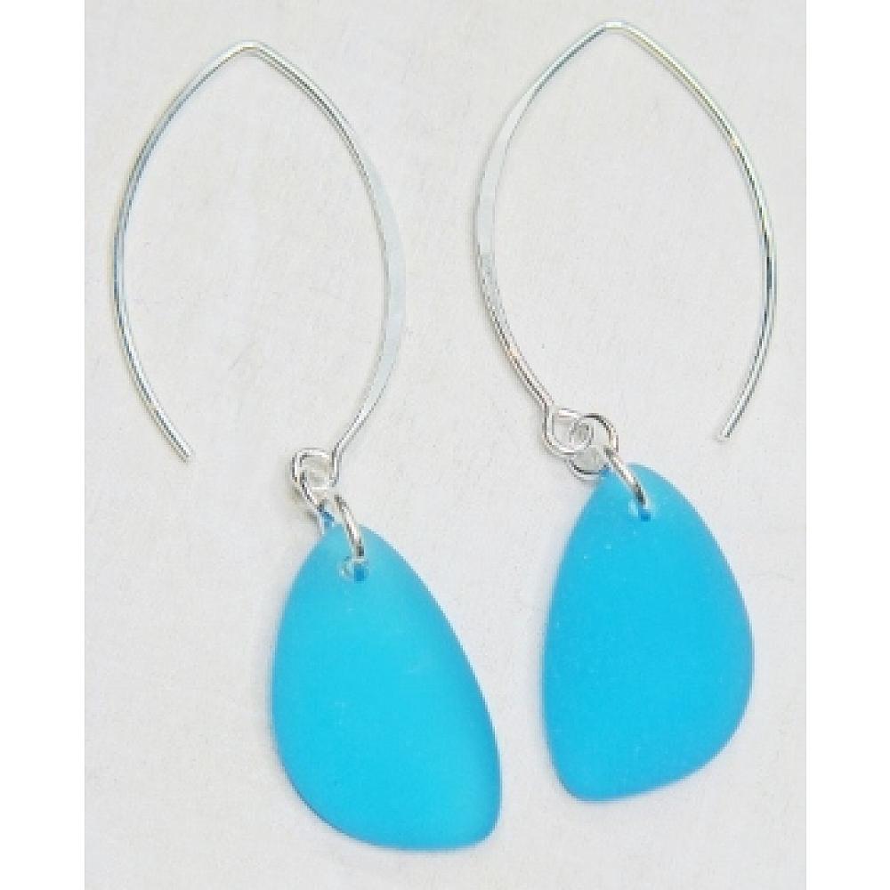 #1841-9 Eco Sea Glass Marquis Pebble Earrings - Pacific Blue