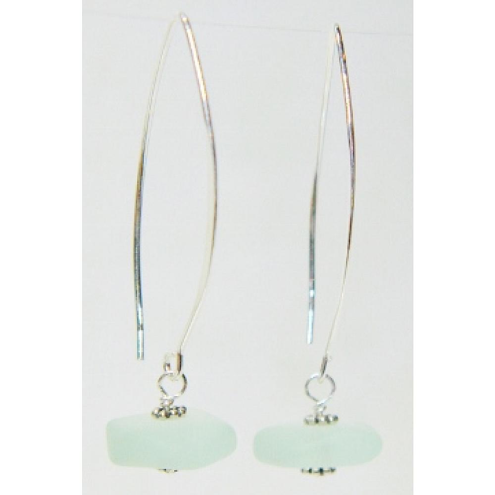 #1808-2 Eco Sea Glass Large Marquis Earrings - Sea Foam