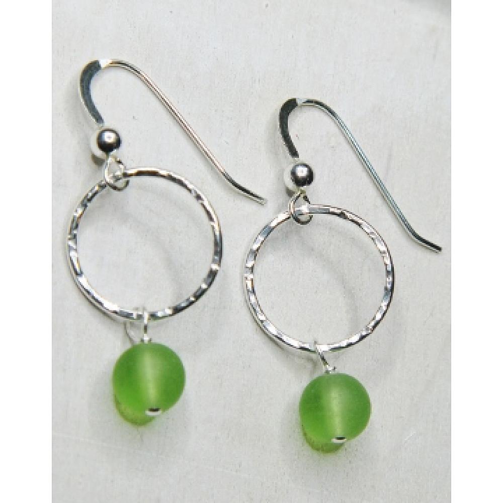 #1843-5 Eco Sea Glass Hammered Earrings - Peridot