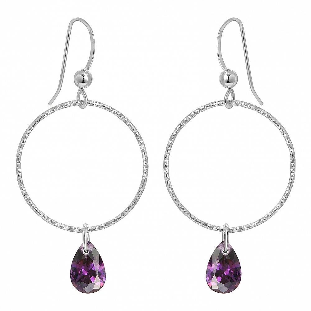 CZ Diamond Cut Hoops Earrings - Amethyst CZ Diamond Cut Hoops Earrings - Amethyst
