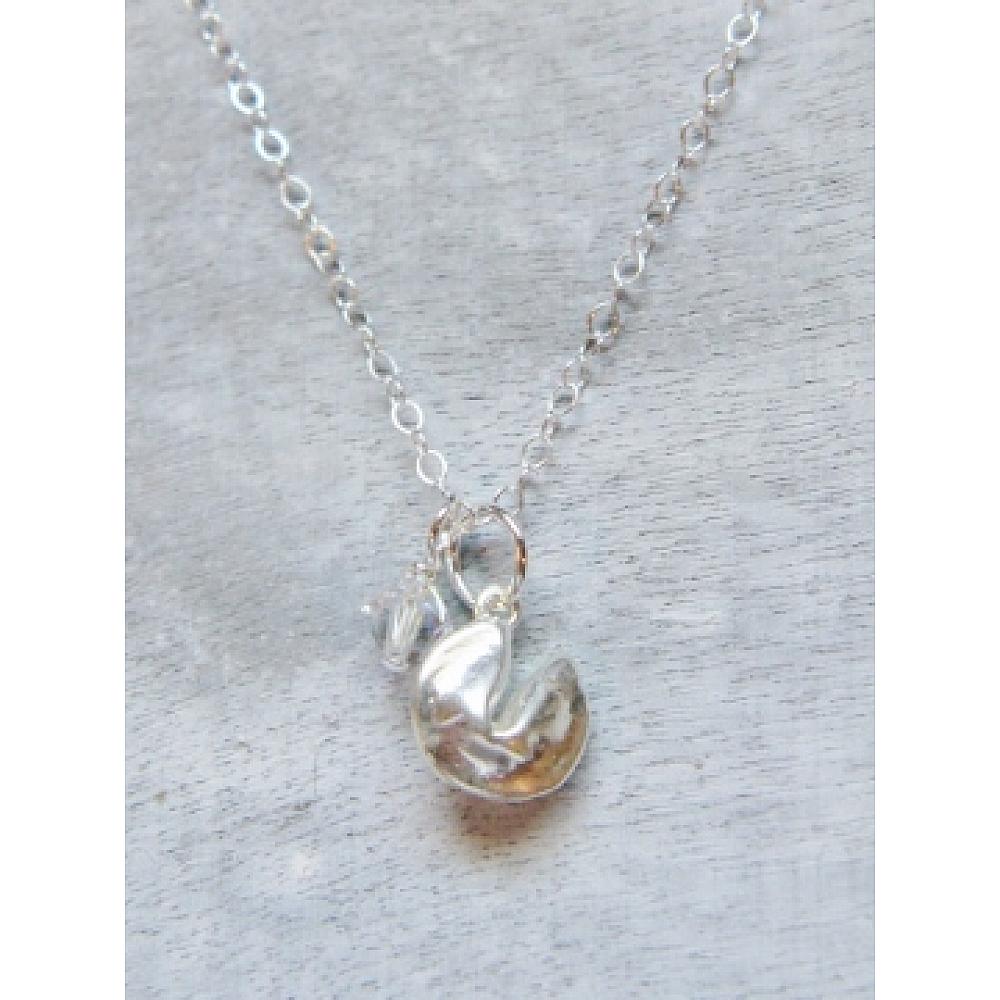 Catch your good fortune with this sterling silver petite fortune cookie adorned with the finest European crystal in clear ab. Comes with 18"  sterling silver classic cable chain with spring clasp for easy wear.