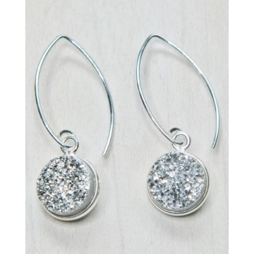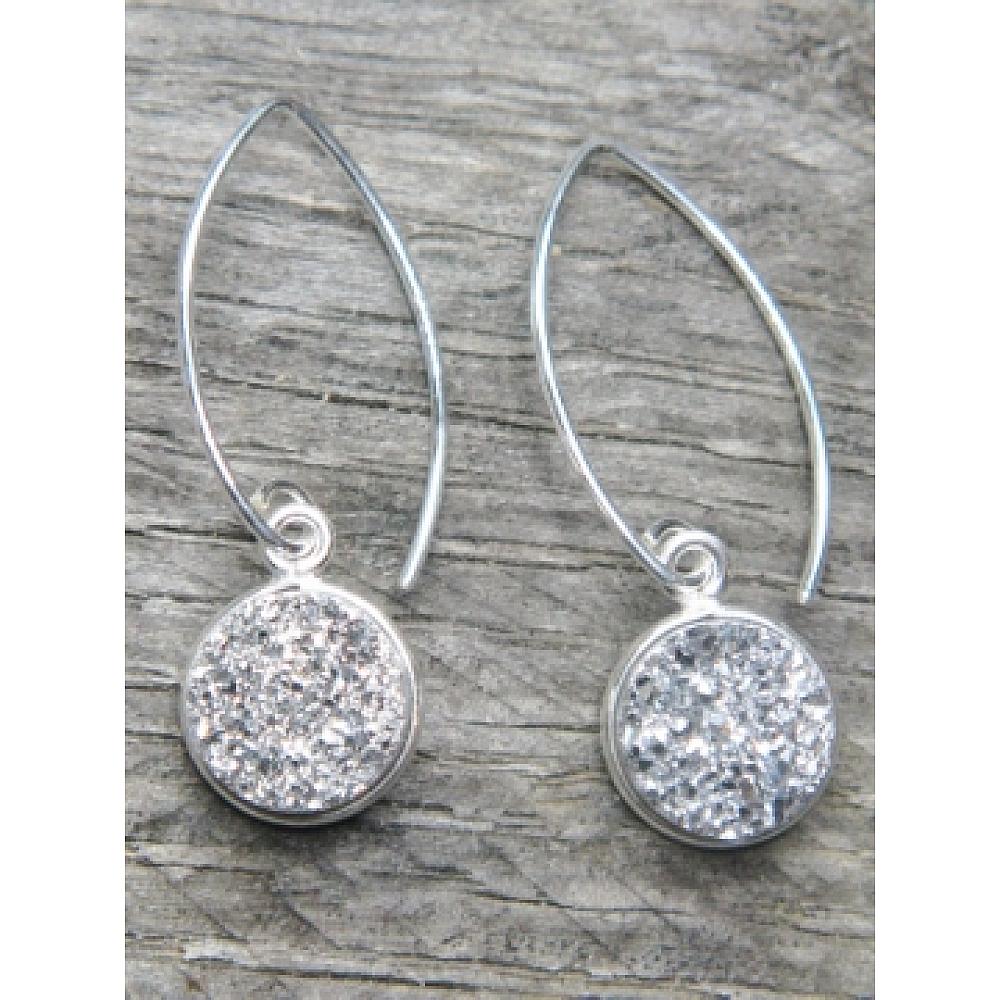 Right on trend! These dazzling druzy earrings in bezel setting in sterling silver hangs in marquis earwires for easy wear. The druzy is in shimmering silver, perfect for everyday wear.