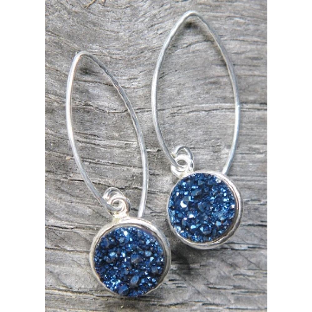 #1467 Silver Bezel Druzy Marquis Earrings - Blue