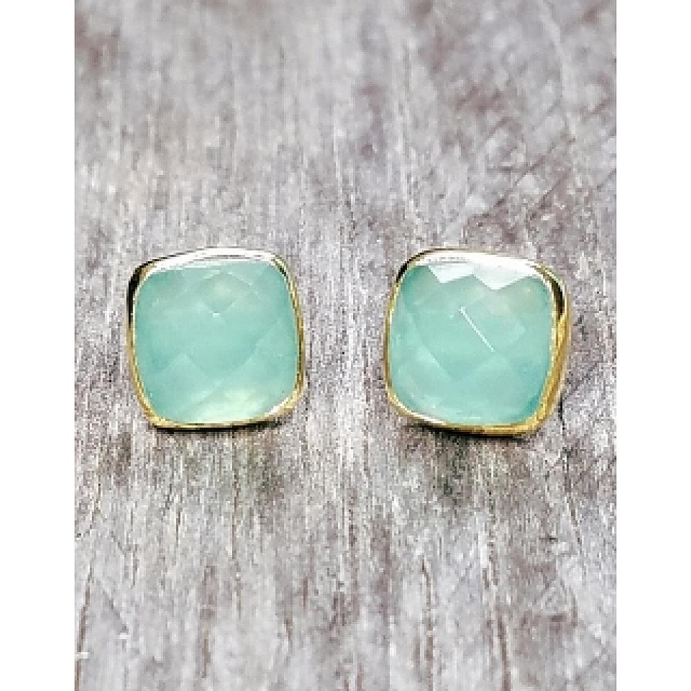 Vermeil Gold Cushion Aqua Chalcedony Studs Earrings