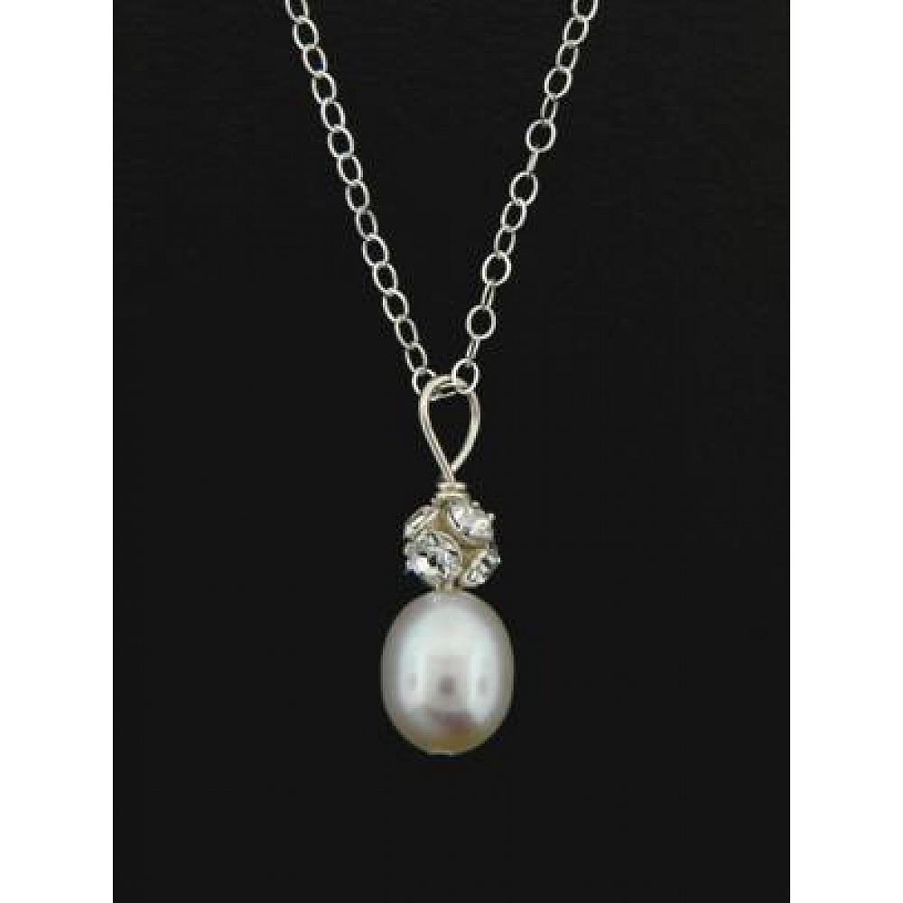 Absolute Elegance. These necklace features a white rice freshwater pearl dressed with genuine European crystal pave in clear. The dainty sterling silver chain adds a perfect touch to this piece.