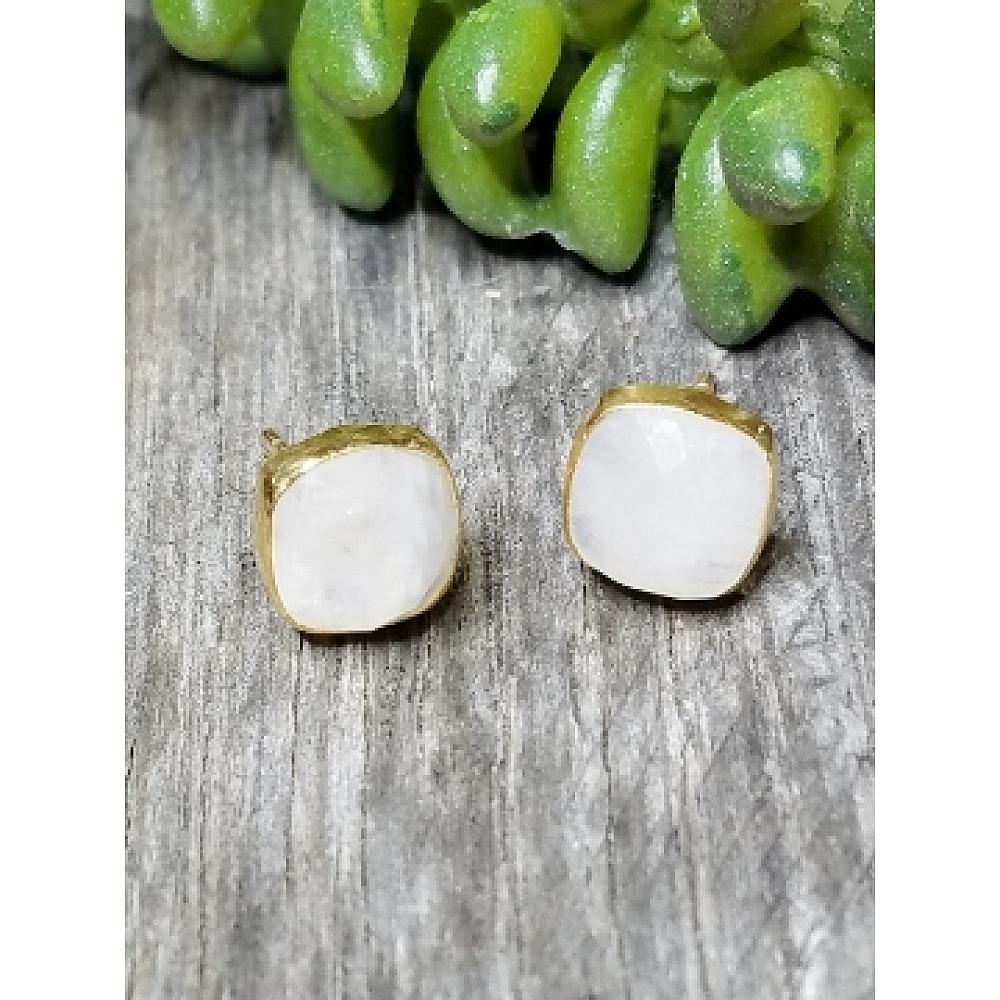 #5907 Vermeil Gold Cushion Rainbow Moonstone Studs Earrings